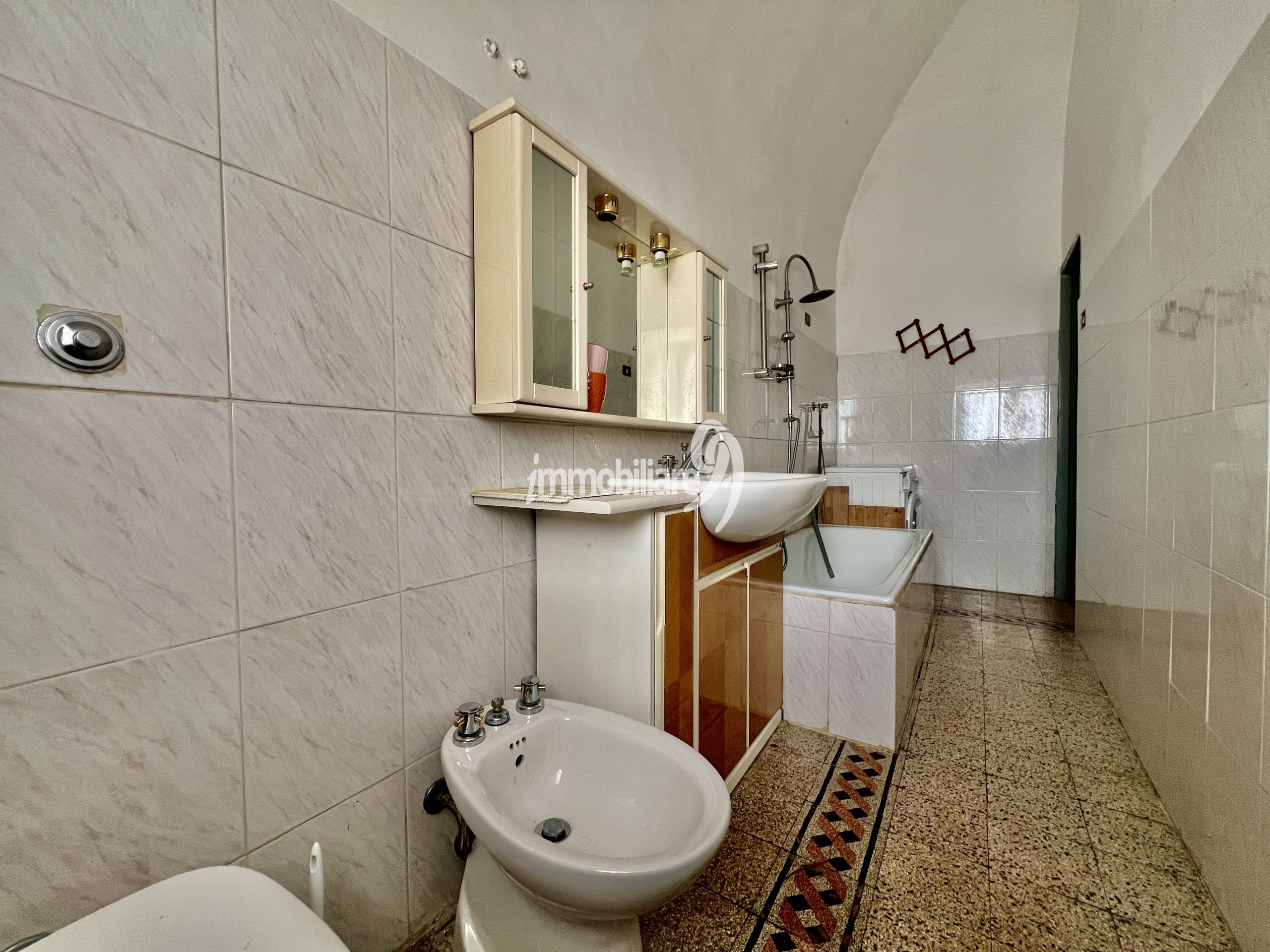 - Bagno spazioso con vasca e predisposizione per lavatrice e asciugatrice.